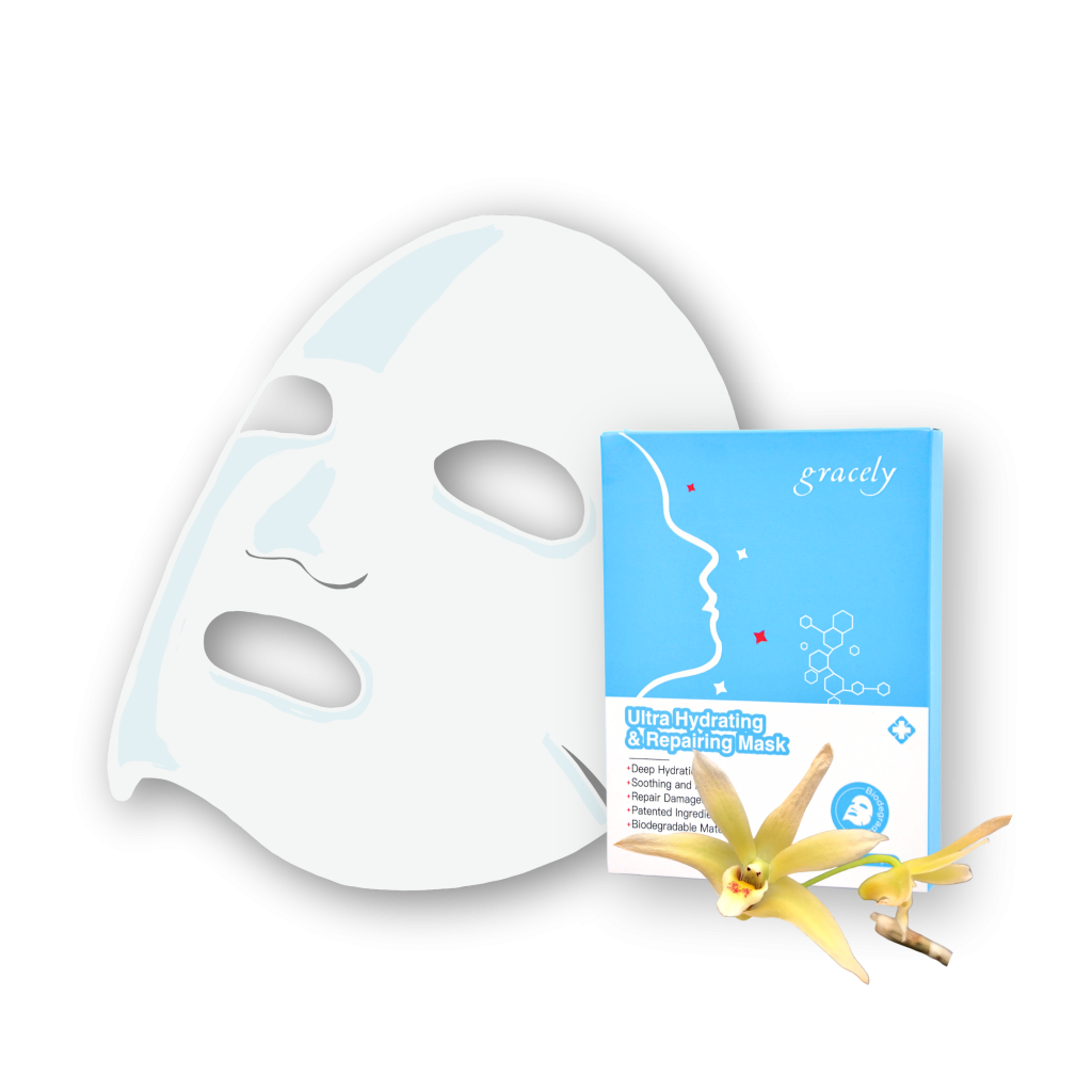 Inspired by the need for quick, effective skincare solutions, we created Gracely – Ultra Hydrating & Repairing Mask to help busy individuals achieve glowing skin without the hassle. We collaborate with highly profession R&D center with many patents developed & GMP certified manufacturer to design the Gracely facial mask by infused with two Patented Ingredients and star Ingredient Sodium Hyaluronate to deliver instant hydration and a radiant glow—all in just 15 minutes!” The Patented Ingredients has proven scientific data in boosting up the effectiveness of Moisturization and Repairing Functions. Besides, we used high quality sheet mask fabric to increase the essence’s absorption capacity and speed. And it is 100% natural & Biodegradable. Unlike traditional sheet masks, Gracely sets a new benchmark in skin care with its cutting-edge technology and Ingredients.